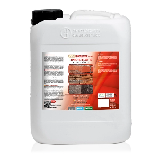 Imprégant aqueux à base d'oligomères silane/siloxaniques et composés synergiques conçus pour réduire la dispersion thermique dans les matériaux de construction absorbants. Agit contre les pertes de chaleur à travers les murs extérieurs tout en réduisant l'absorption d'eau et en prévenant les efflorescences salines. Performances thermiques vérifiées par le CNR-ITC (norme UNI EN 12664:2002).